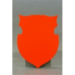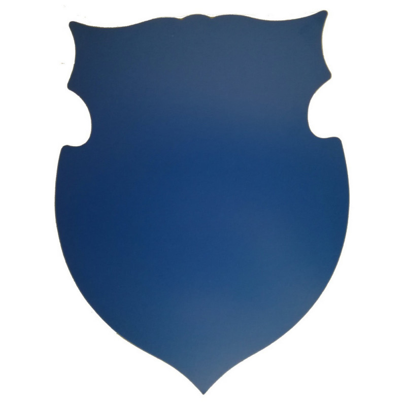 Skjold til æresport H - 44 cm, B - 34 cm. med tekst udskåret i vinyl og monteret..